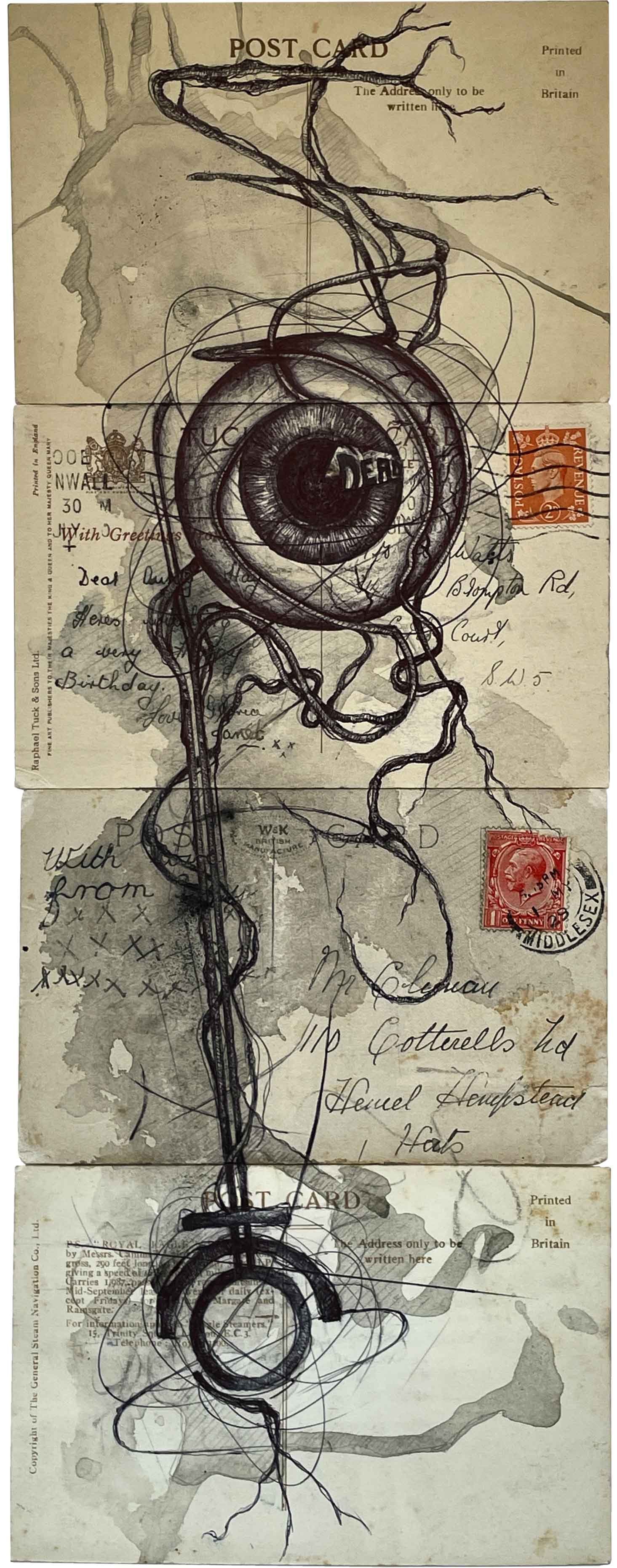 Medium: Biro and ink on used postcards